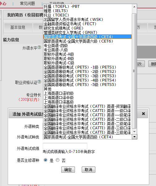 外语水平和职业资格认证一定记得勾选,并按照实际情况如实填写。*英语水平必须符合招聘公告的要求否则不能通过网申。若选择“其他职业资格”,则可在“专业特长”中加以说明。