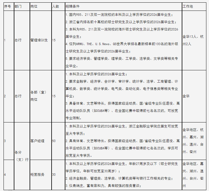 1.薪酬待遇:根据金华银行薪酬管理相关规定执行。
